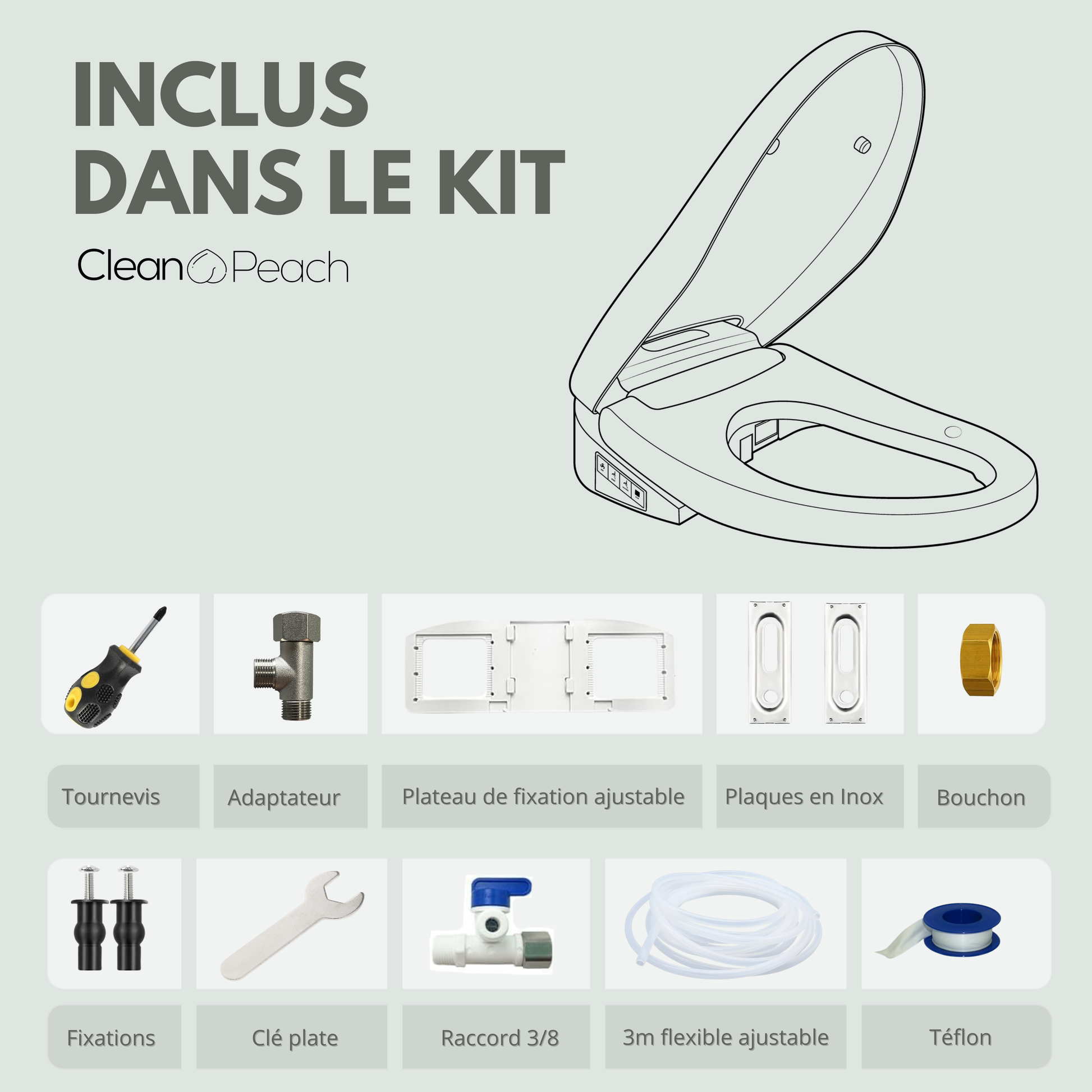 - 🪛Installation simple & compatibilité universelle : montage rapide du wc japonais sans outils sur la majorité des cuvettes standards (formes rondes ou ovales), avec kit complet fourni pour une mise en place facile et immédiate.